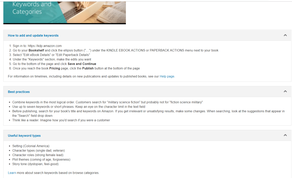 Your book description should be a short blurb intended to get people interested in your book. When this is displayed on the book page on Amazon, only the first few lines will be visible without having to click on Read more, so you’ll want to concentrate on making the introduction reader worthy.