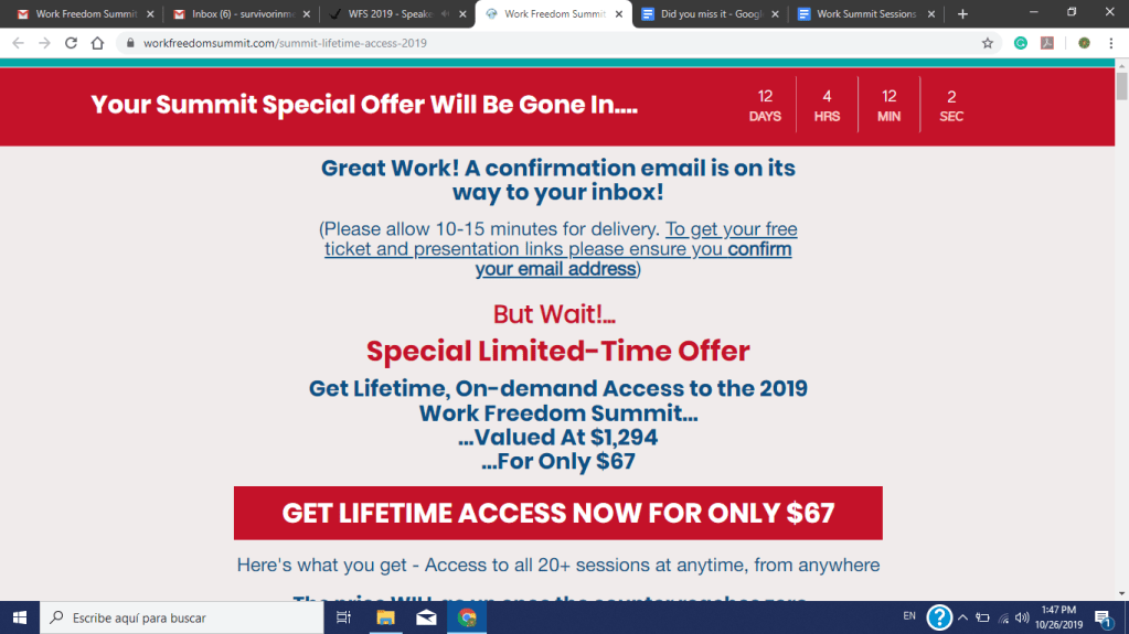 The thing with online summits is you only get free access for a limited period of time. Depending on your schedule, you may not get to listen to all the sessions you planned to. I know that happened to me with the Work Freedom Summit this week.