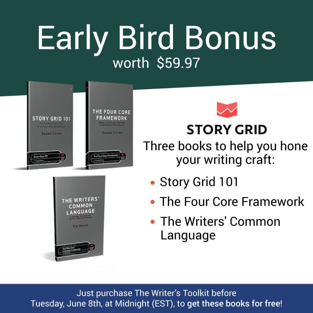 • 3 Story Grid Books for Free: Story Grid 101, The Four Core Framework, The Writers’ Common Language from Story Grid worth $59.97