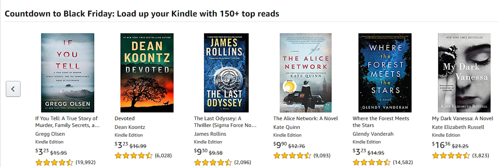Amazon is another place that you can get your Black Friday book deals now. The Countdown to Black Friday: Load up your Kindle with 150+ top reads section is certainly worth taking a look at!