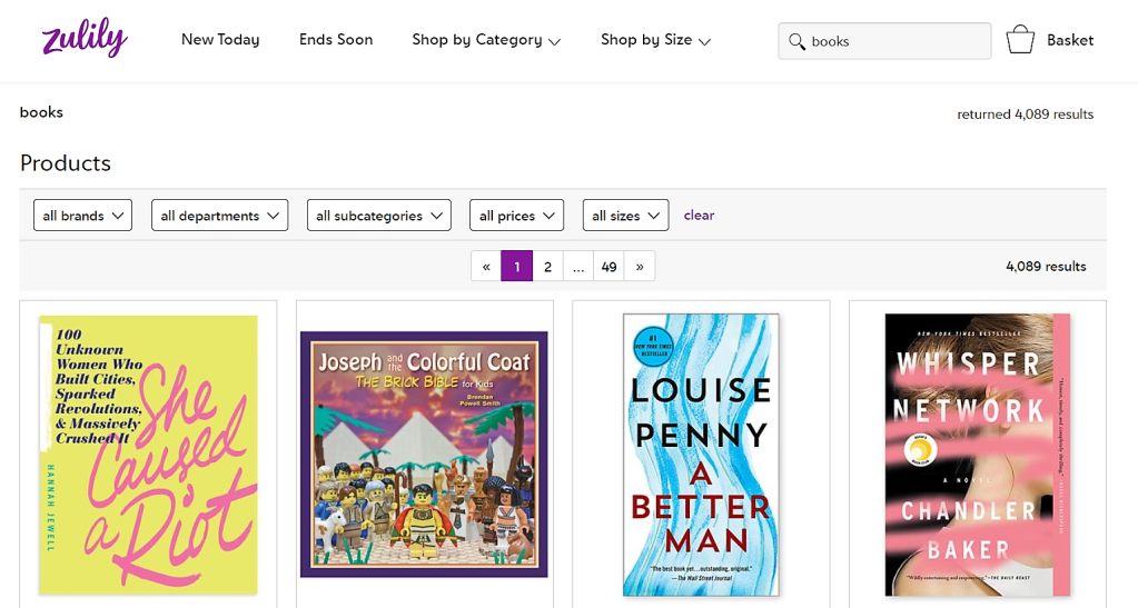 Zulily has discounted books! Just type “books” in the search bar and see what awaits! The selection available changes daily, so it’s worth spending a few days checking out what they’ve got.