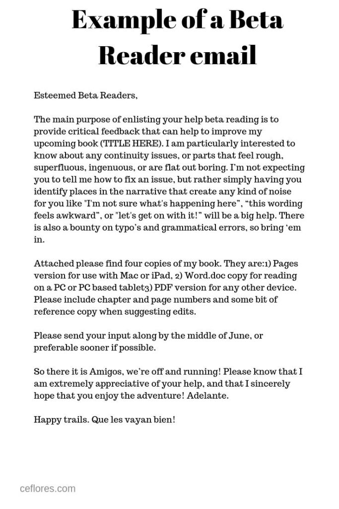 Once someone has agreed to be a Beta Reader, you want to keep in regular contact with them. Your initial email will be a genuine thank you as well as specifics on what you are looking for from them, error correction, help with foreign language expressions, continuity issues and so on. Include a digital copy of your book, unless they specifically request a print copy In that case, you can send them a proof copy. Also be specific as to when your book is launching and when you’d like final commentaries so that any changes can be done before the book launch.
