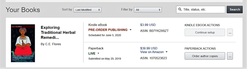 Once it is live, you’ll receive an email where you can check out the detail page on Amazon for this title.
